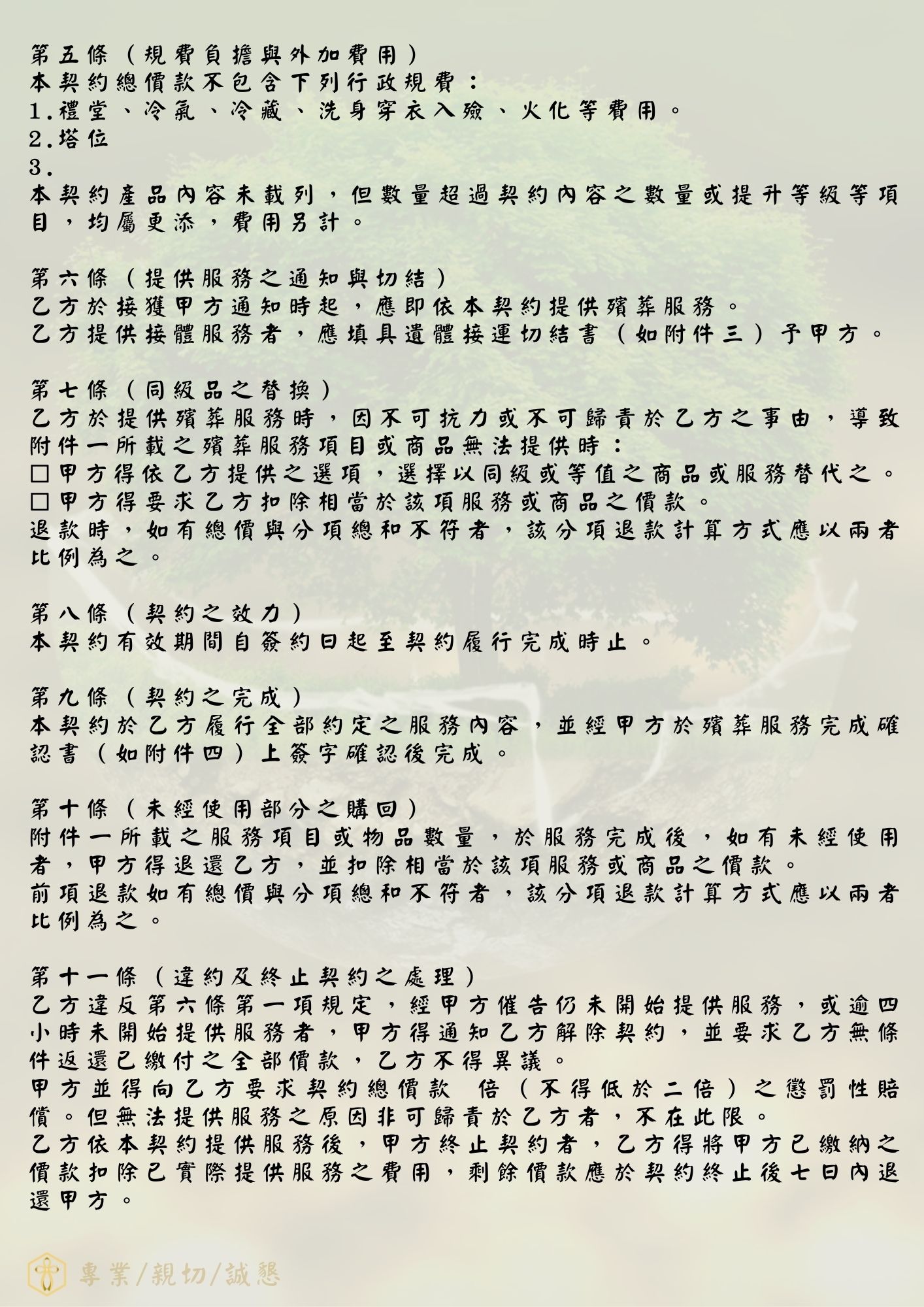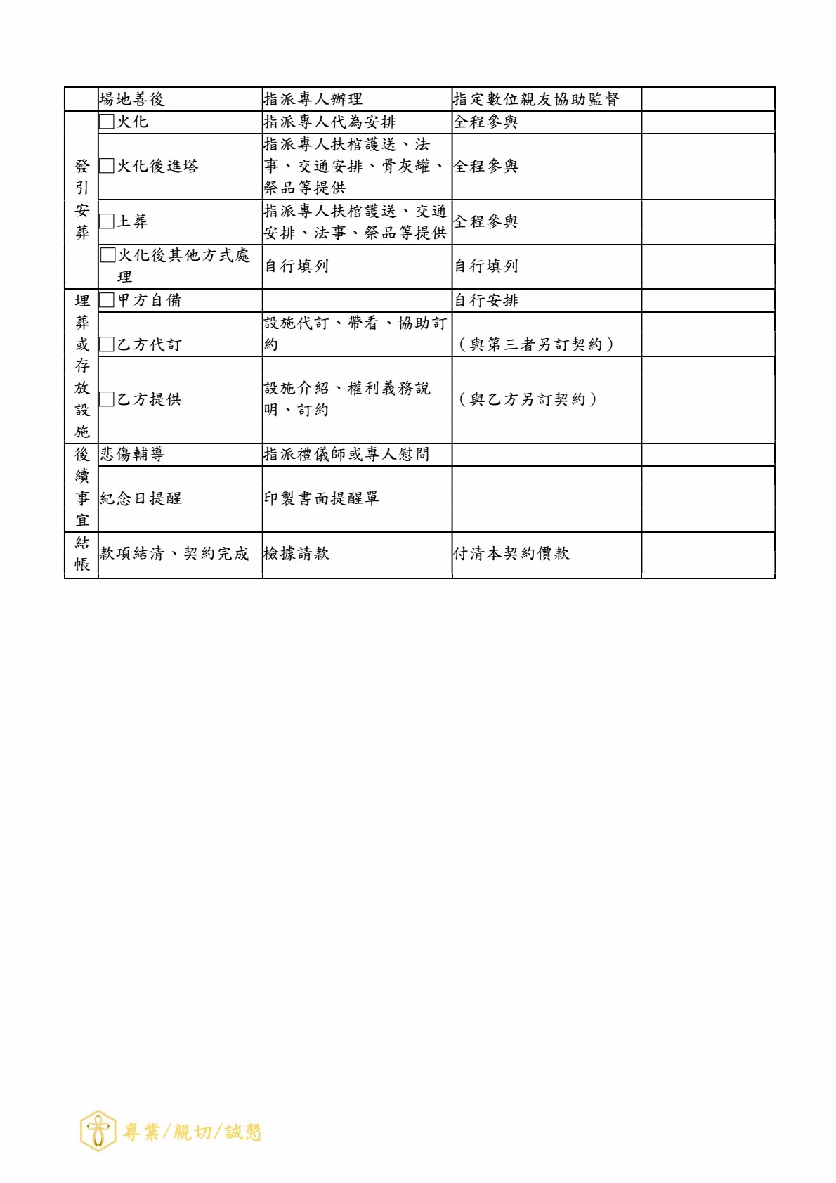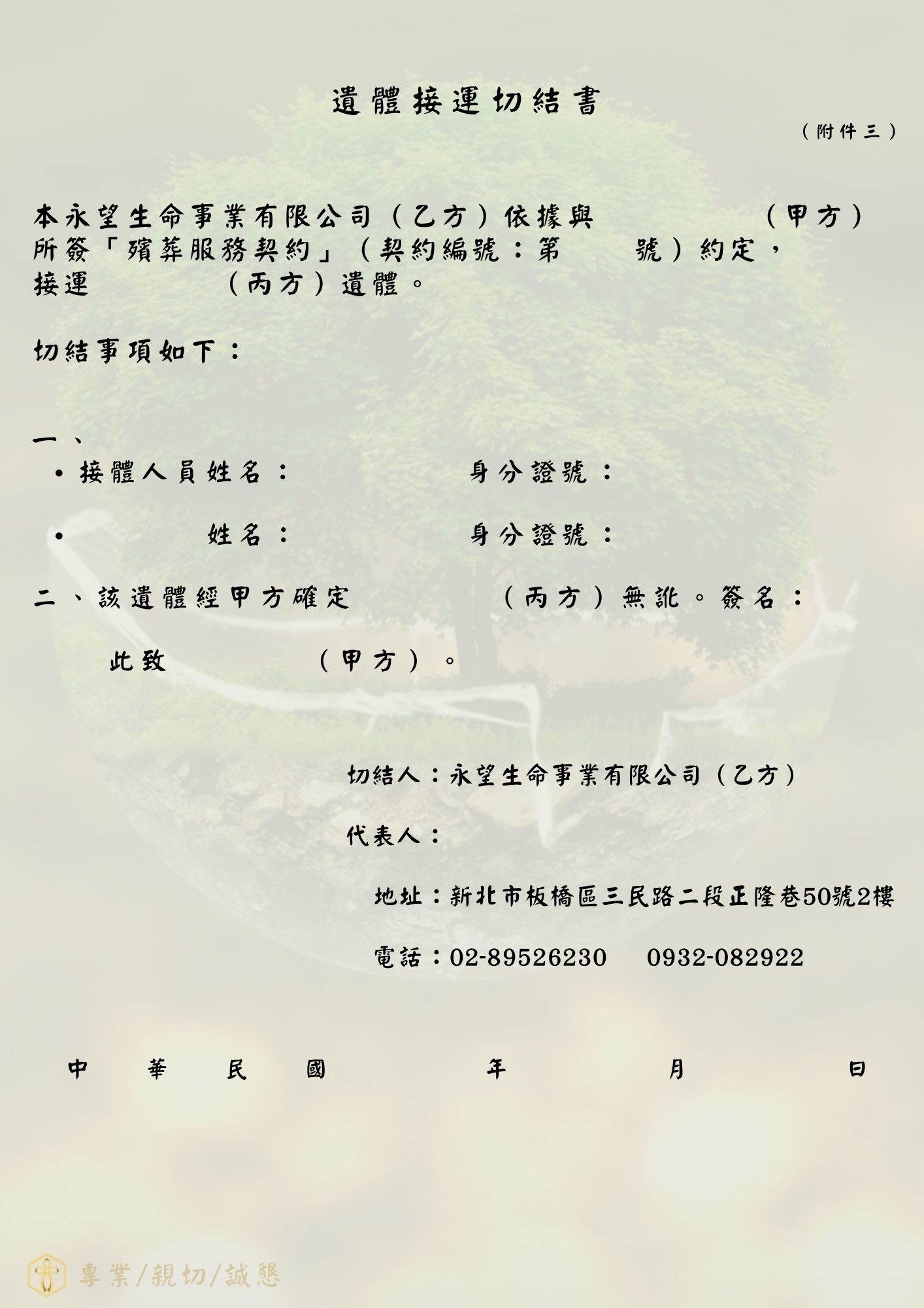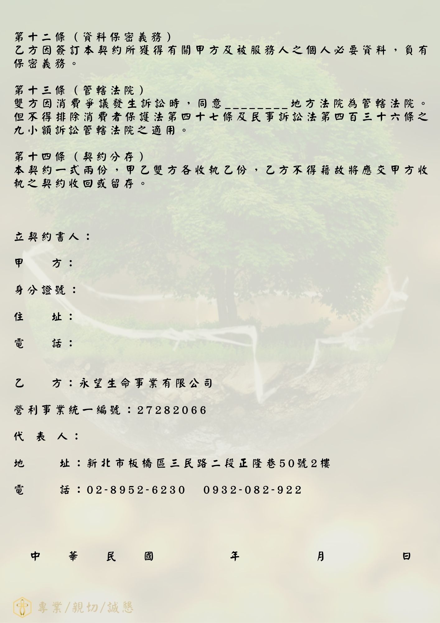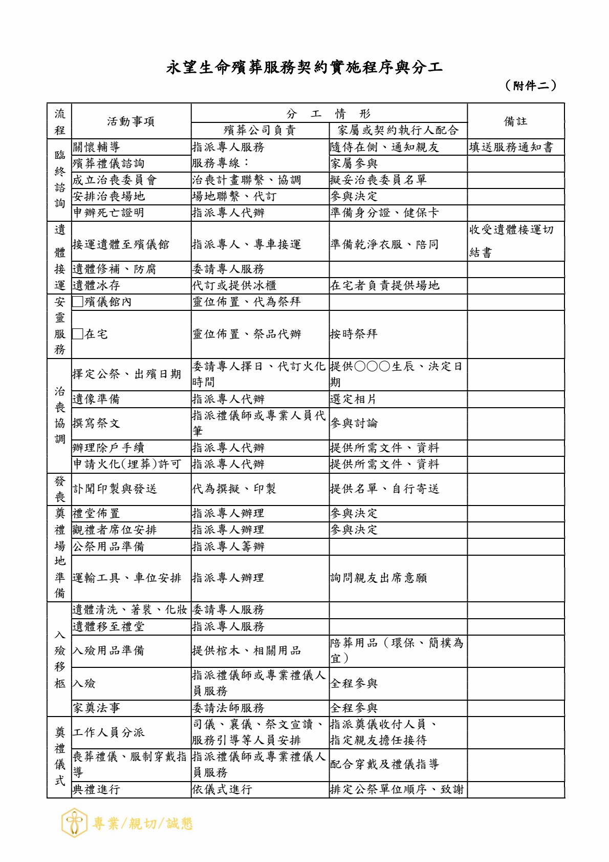 永望生命秉持著公平公開原則,依所需信仰及喜好自選服務項目,不必拘束於傳統或一般禮儀公司制式契約,永望生命不斷研究及創新每個客戶的需求,以不斷滿足客戶所須並忠於客戶所託。